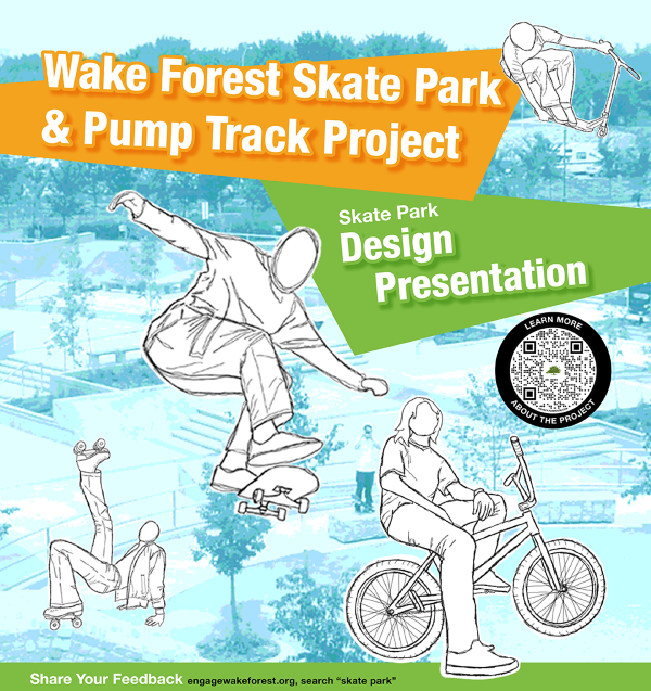 In early 2024, as a requirement of obtaining grant funding for the project, the Town sought public input via two community meetings and an online survey. In late 2024 the Town received a PARTF (Parks & Recreation Trust Fund) grant in the amount of $500,000 to assist with building the facility. Earlier this year, after a publicly advertised Request for Qualifications (RFQ), Wake Forest hired New Line Skatepark Inc. to manage the design and construction of its first skate park and pump track.